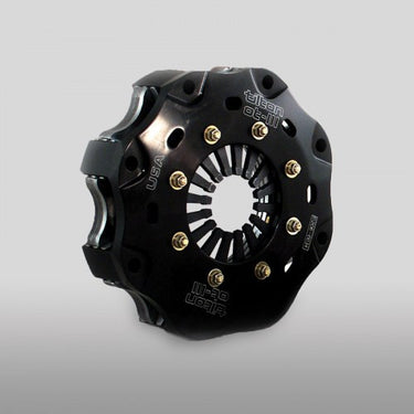 Tilton’s 5.5″ OT-III metallic racing clutches offer the low moment-of-inertia, high torque capacity and reliability necessary for the most demanding racing applications. These features have made metallic clutches the most common clutch type used in road racing and circle track racing. The included high ratio pressure plate features short release travel for quick engagement and shifting as well as a flat clamp load curve for longer wear range.  5.5″ OT-III metallic racing clutches are not recommended for street use.